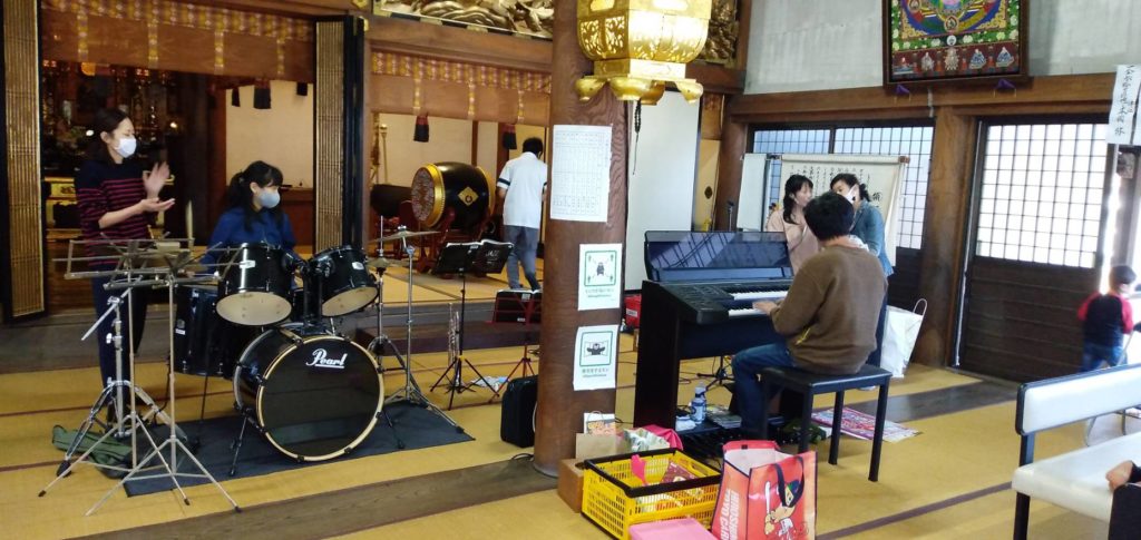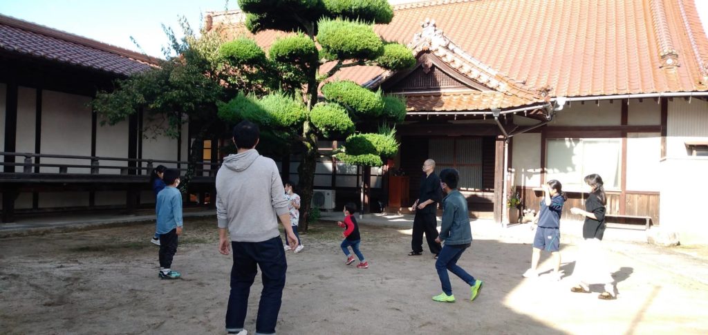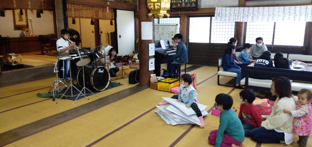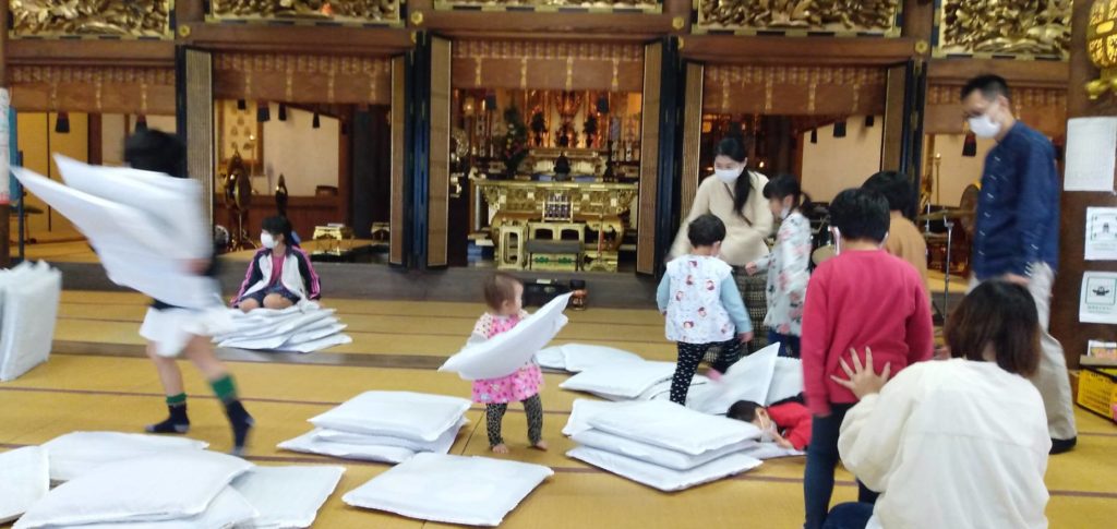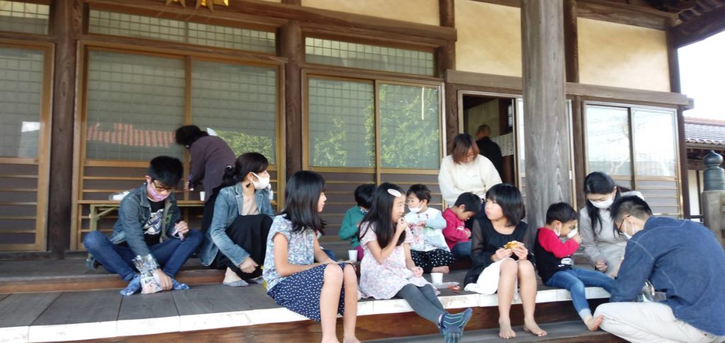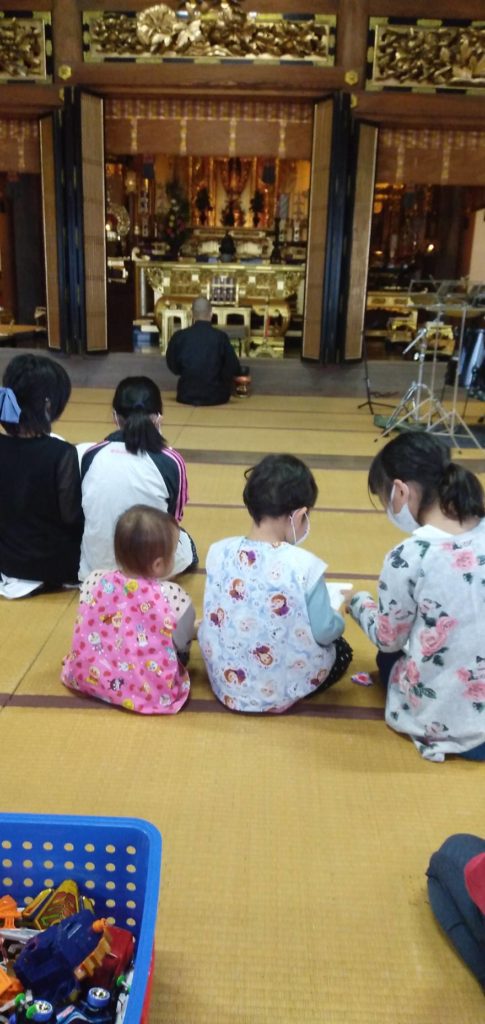 みんなで「らいはいのうた」をお勤めをして若院が紙芝居をし、その後は本堂や会館、境内で自由にすごしていただきました。