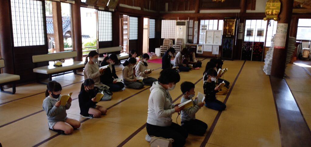 はじまりにあたって「らいはいのうた」でおつとめをして、若院の紙芝居。