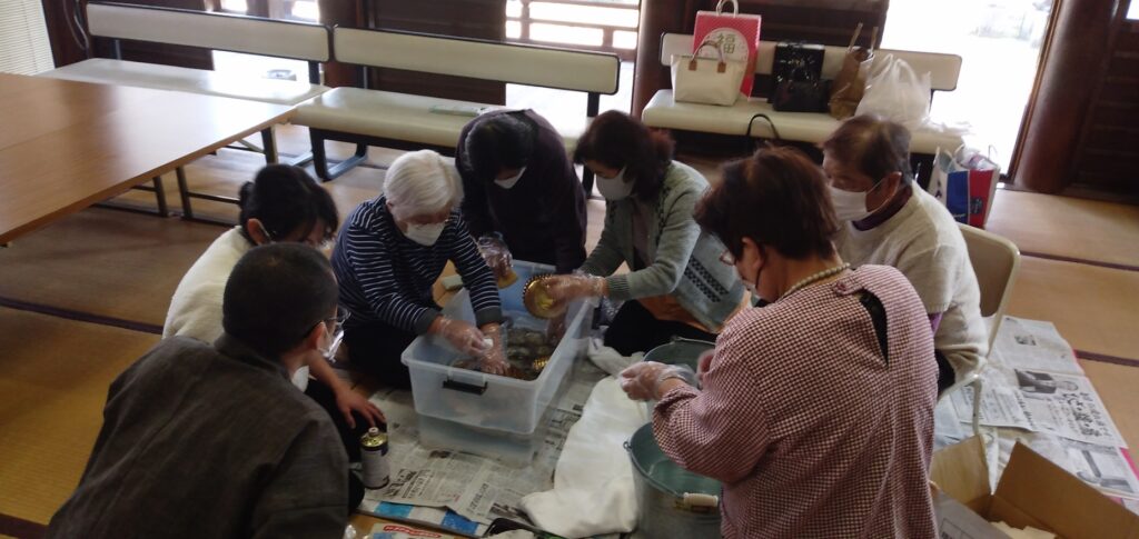 この度、報恩講のご法座を前に、仏教婦人会有志の皆さんがお集まりくださって、輪灯の おみがき をしてくださいました。
