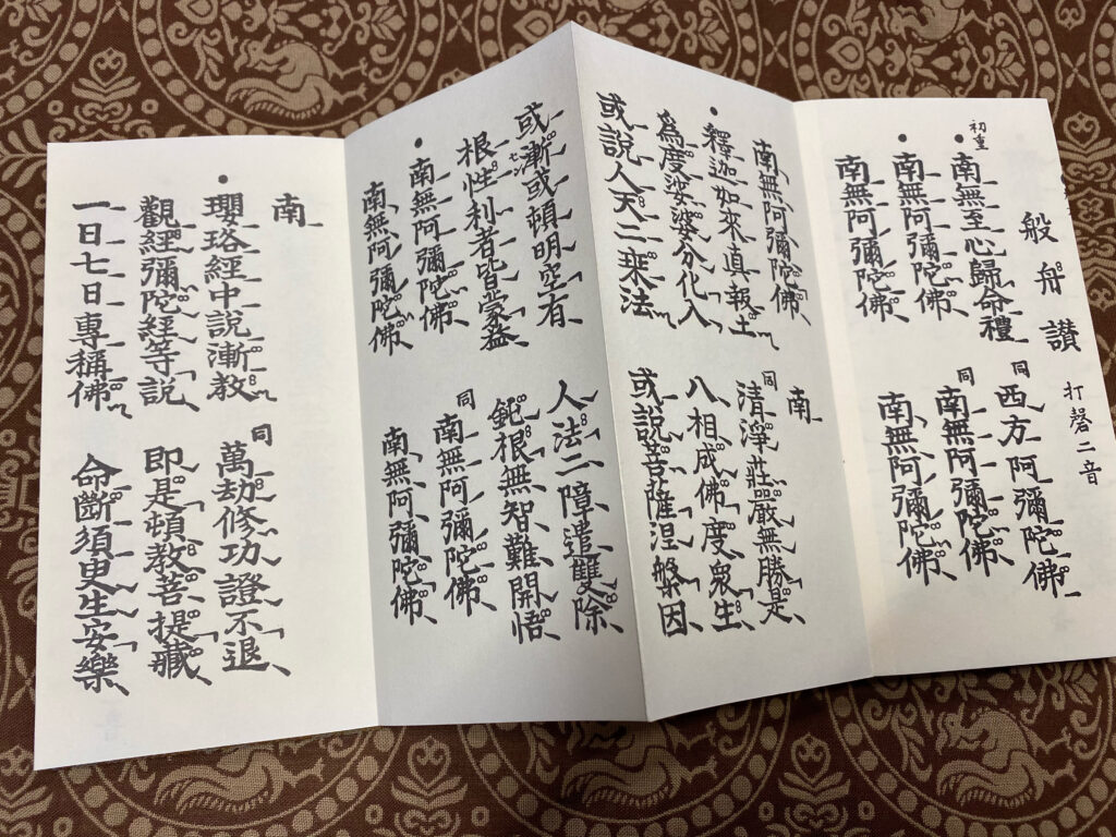 善導大師の著述に依る『往生礼讃偈』に、六時(日没、初夜、中夜、後夜、晨朝、日中)の礼讃とともに収録されている、とても美しい旋律のおつとめです。