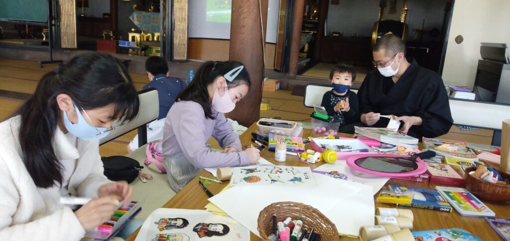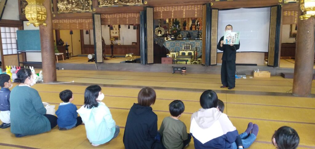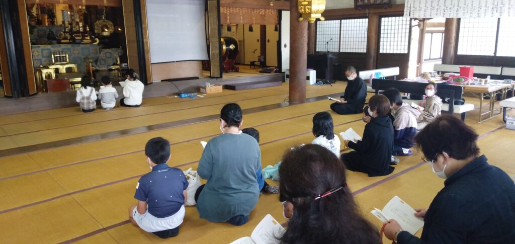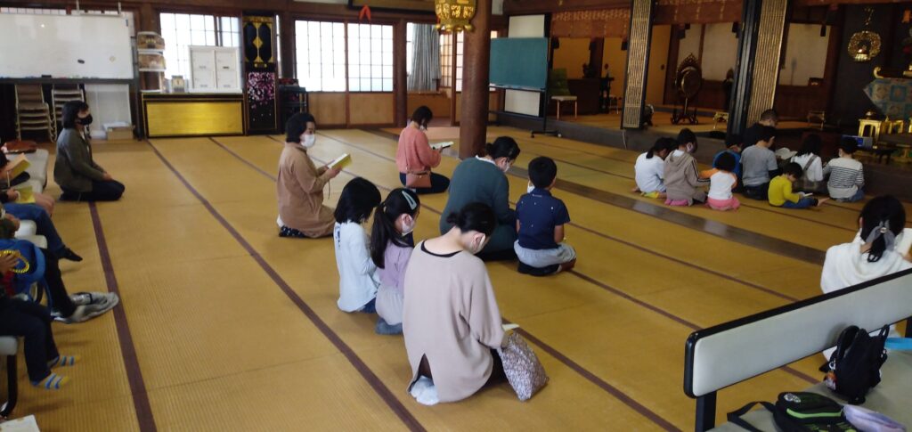いつも参加してくれるお友達は、もうすっかりおつとめの作法も身について、いっしょに大きな声でお念仏や「らいはいのうた」をおとなえしてくれます。