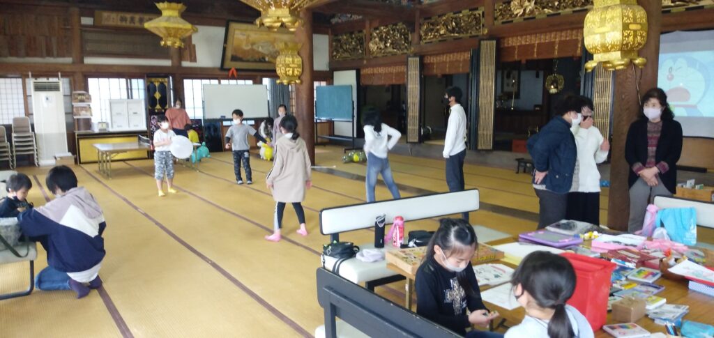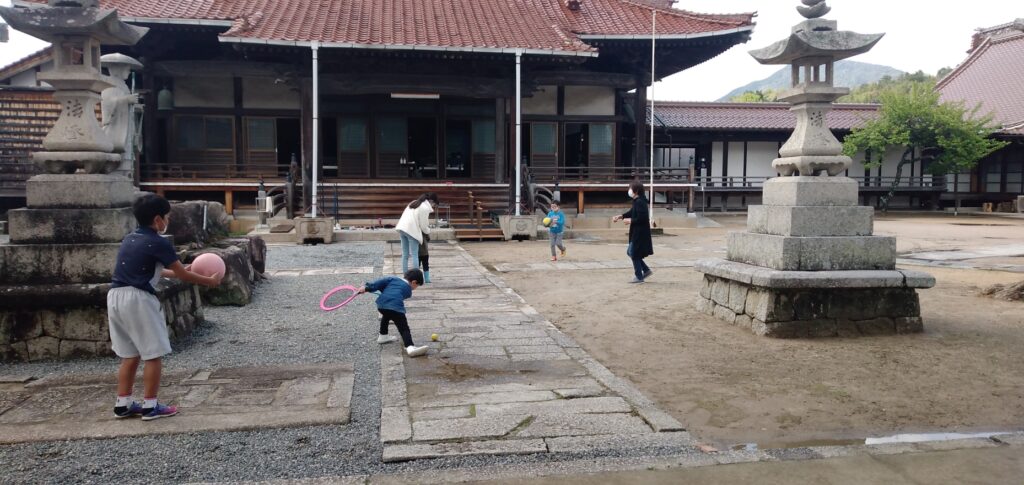 はじめてのお友達もすぐに仲良く打ち解けて、みんなの元気な声がお寺に響きました。