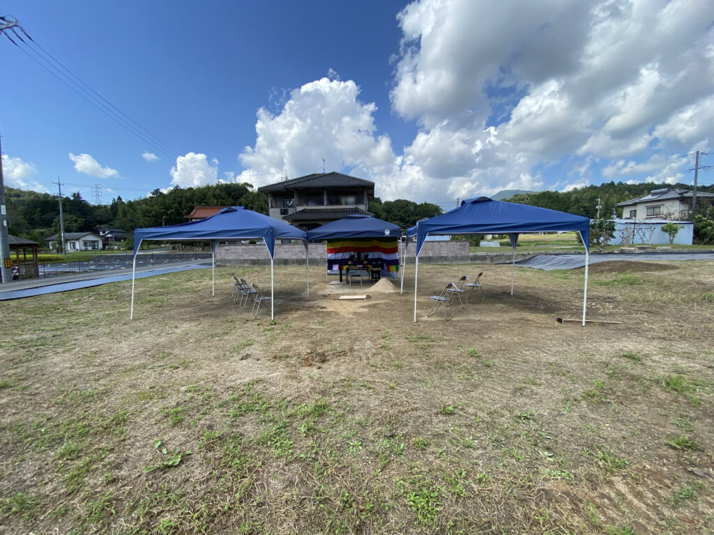 起工式当日は、朝から激しい雨が降りましたが、起工式を執り行う午後には気持ちの良い青空が広がり、滞りなく儀式を行うことができました。