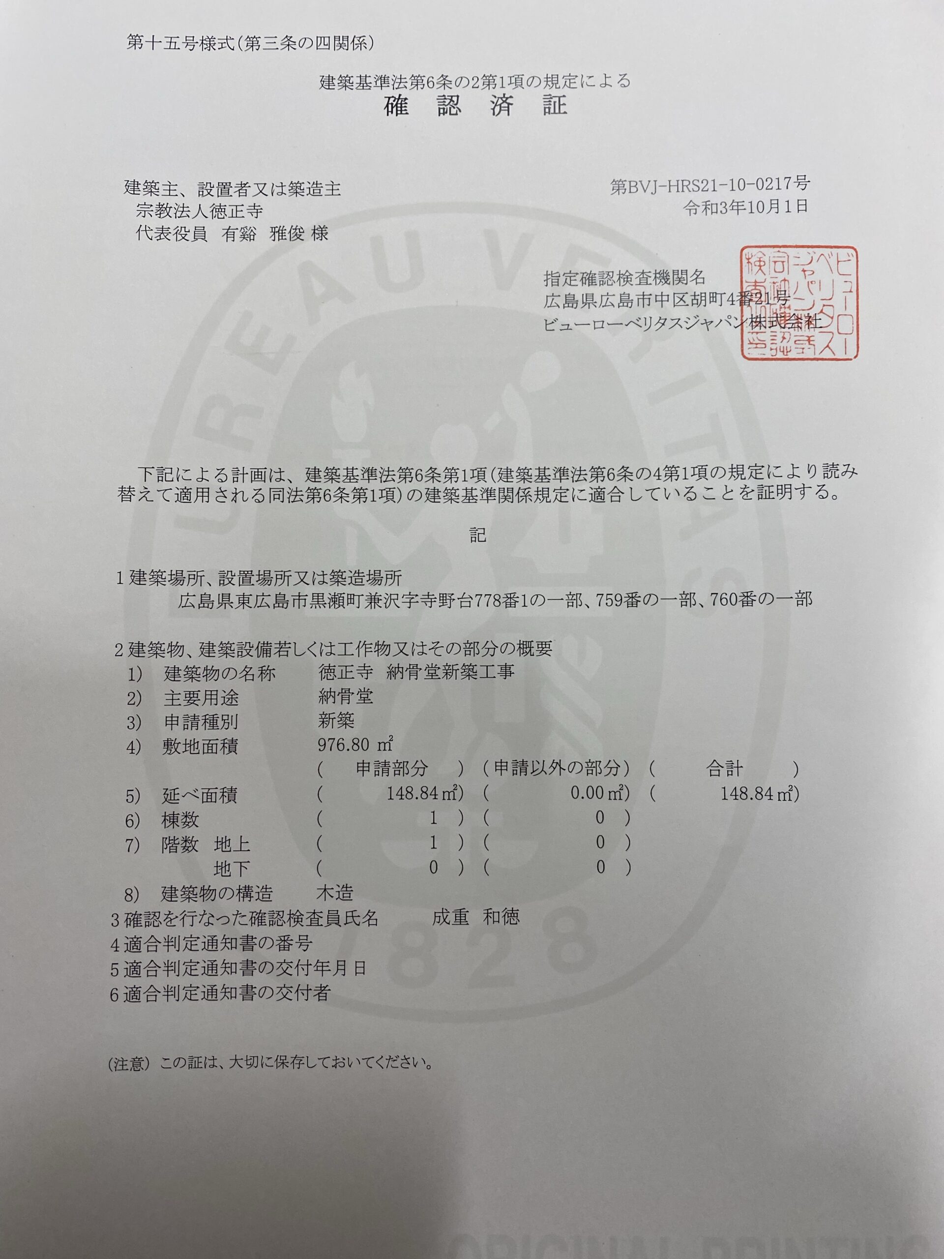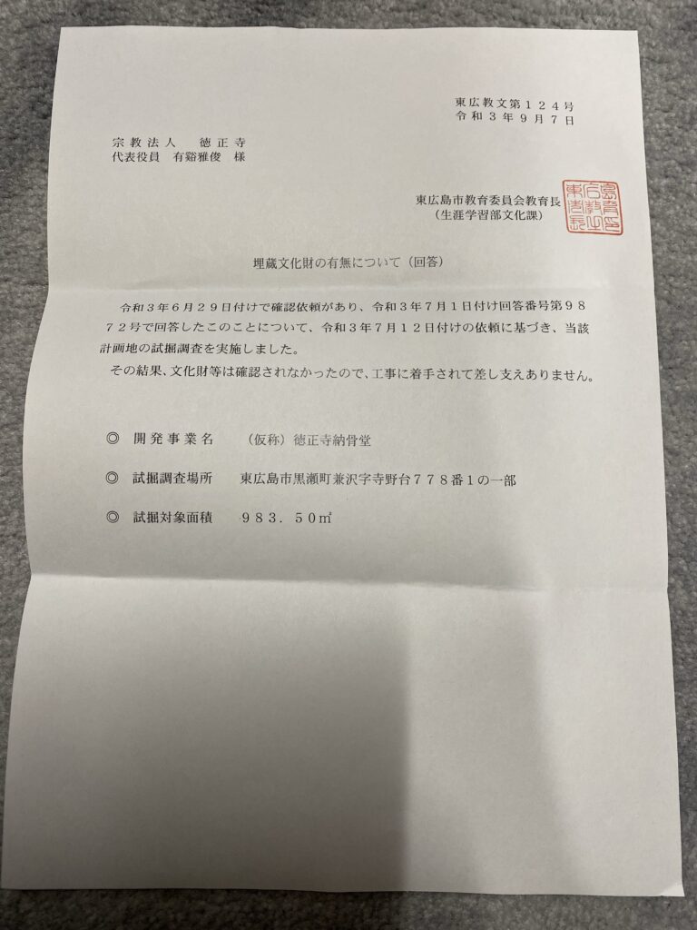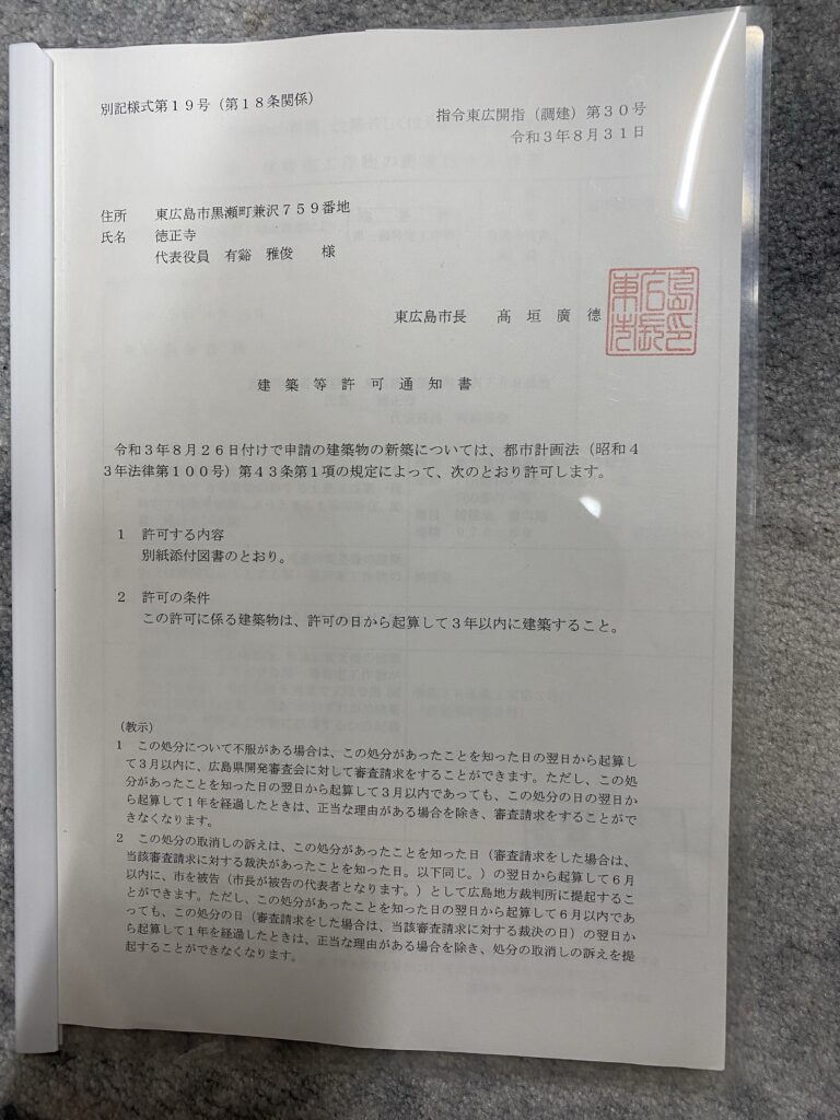 また、今回の建立地が市街化調整区域であることから、都市計画法における「建築許可」も必要でした。