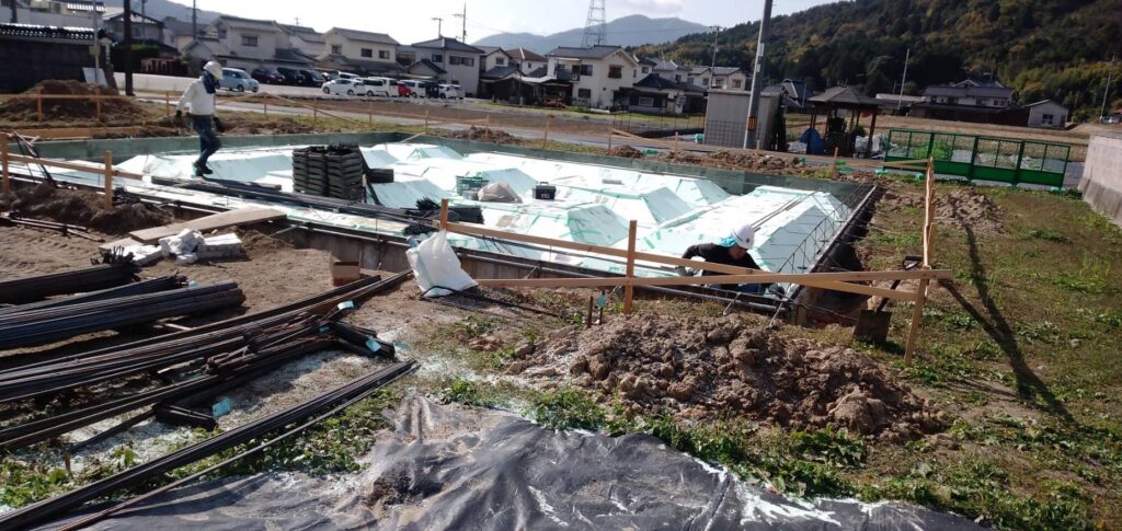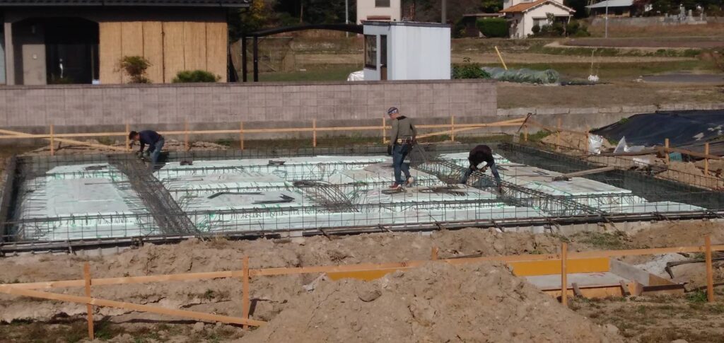 前回の投稿でお伝えした、防湿シート、断熱材の施工に続いて、基礎工事が着々と進んでいます。