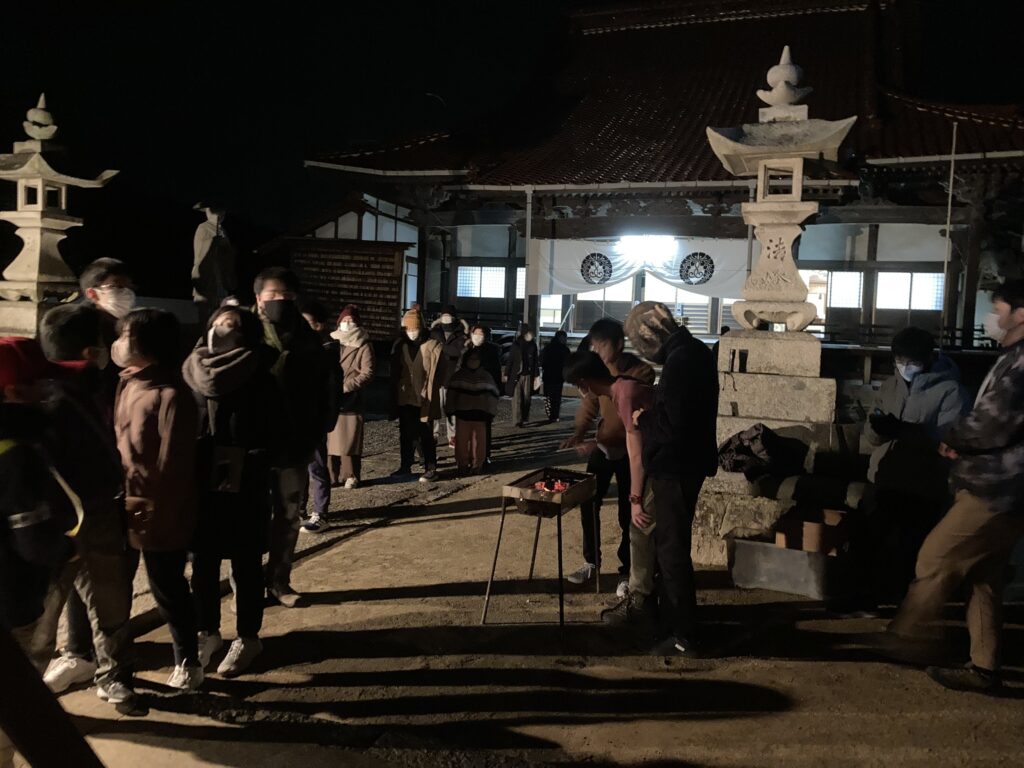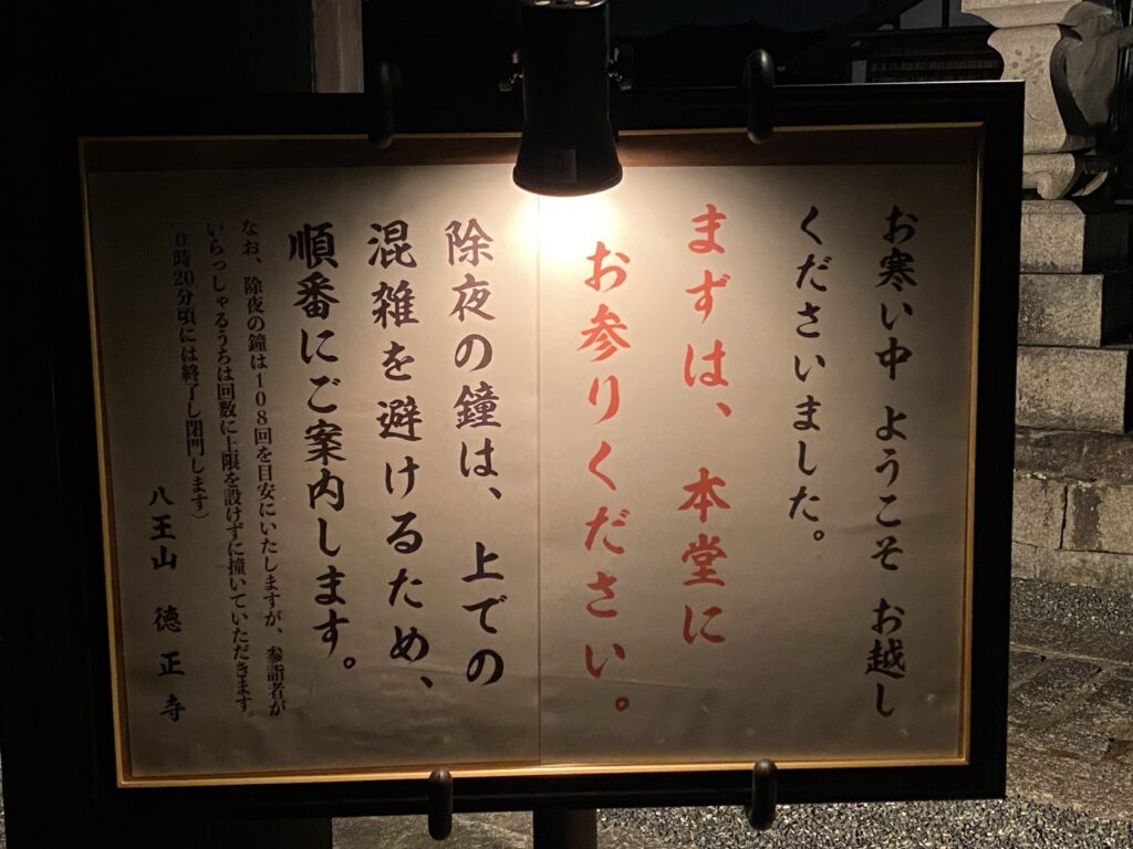 23時半から若院が般舟讃のおつとめをし、それに引き続いてご参詣の皆さまが順番に鐘を撞いていかれました。