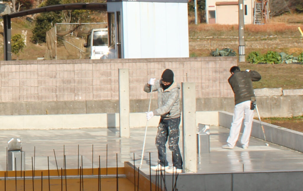 まず、建物の立ち上げや支柱土台、スロープ、出入り口ポーチなどの型枠が作られ、コンクリートが注がれていきます。