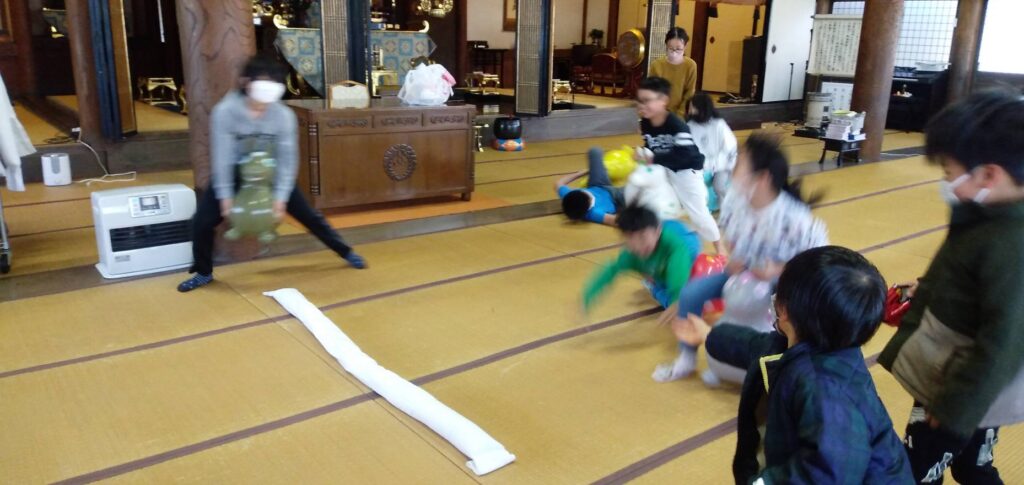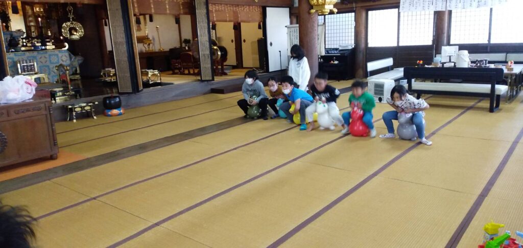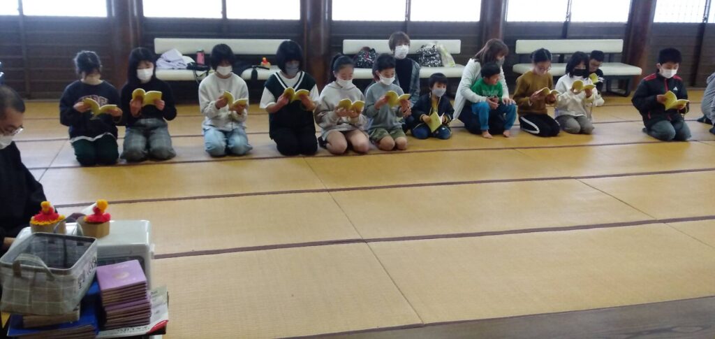 「今日はお寺の日じゃけぇ、みんなで来たよ!」