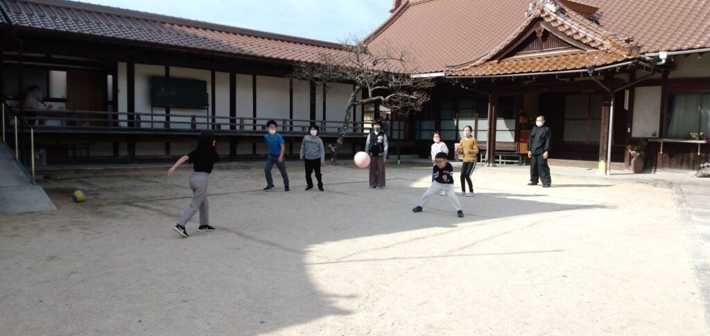 境内でのドッヂボールも、みんなで楽しみました。