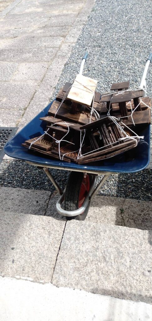 ちなみに、鳥の乗っている木製の台は、近所のご門徒さんが勝縁廟建立時に出た木材の端材を加工して、用意してくださいました。