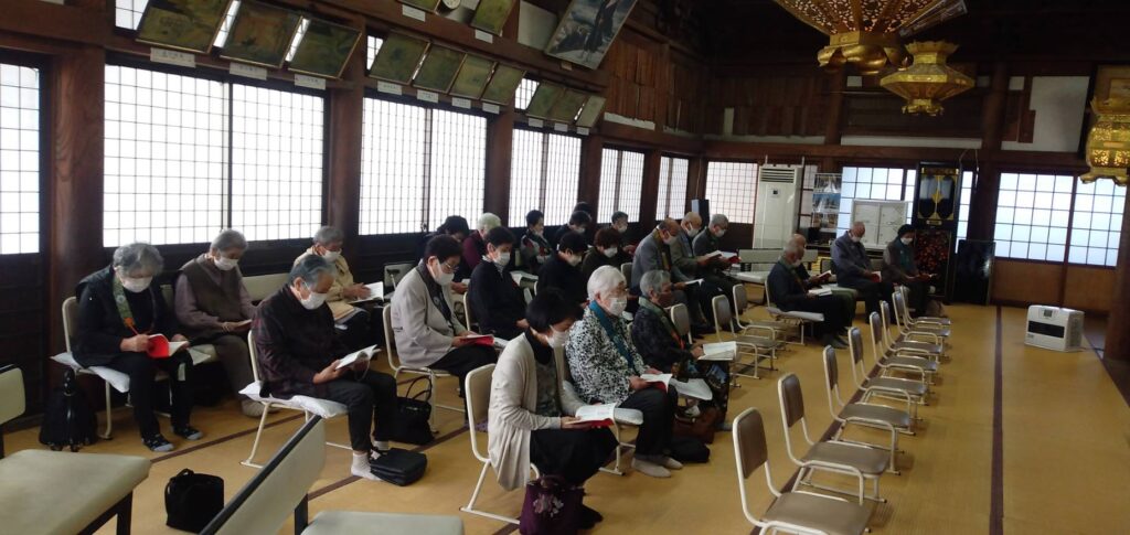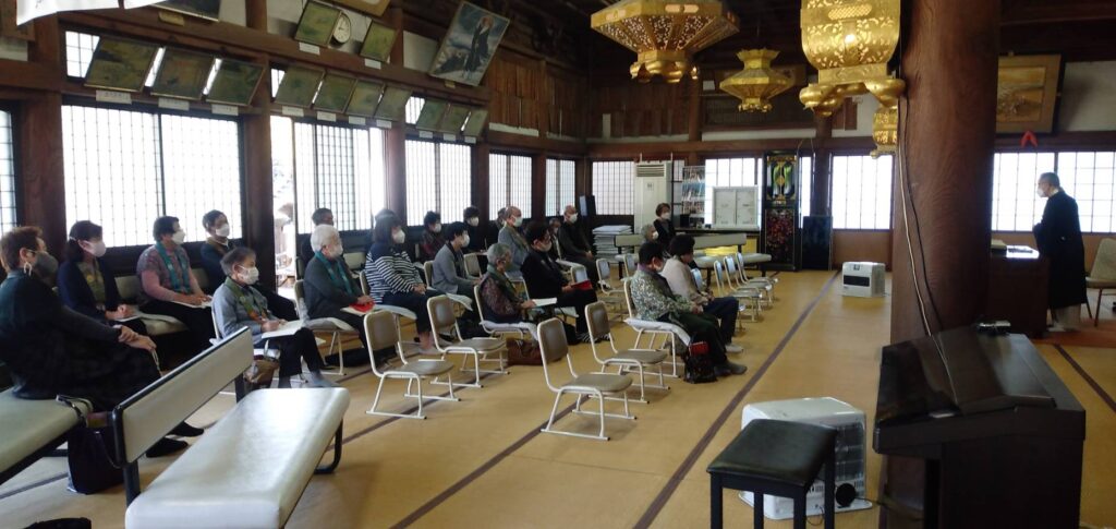 両日とも、朝席は正信偈、昼席は阿弥陀経でお勤めをさせていただき、福山市・光栄寺 平山義文師より、お説教を賜りました。
