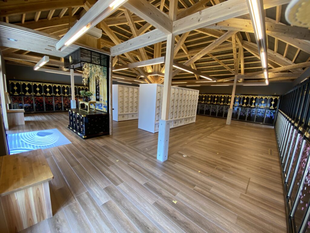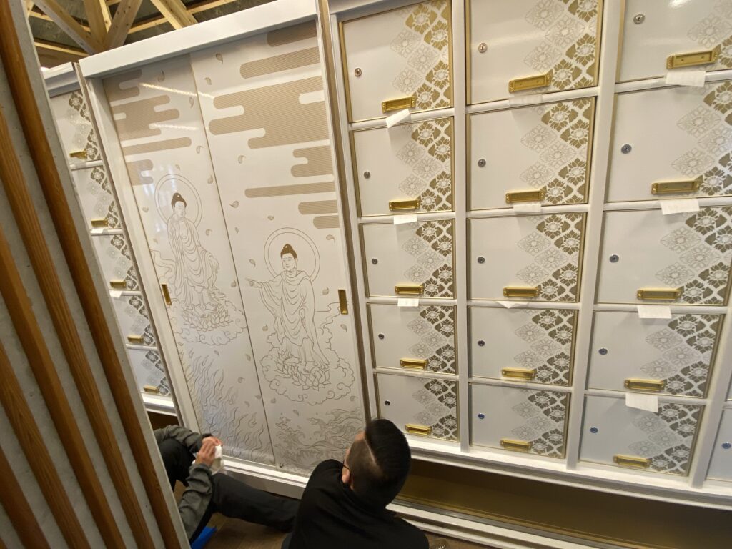 その後、設置されたお壇ひとつひとつに、御本尊や輪灯などをはじめとした細かい装飾が施されていき、すべての納骨壇設置が完了しました。