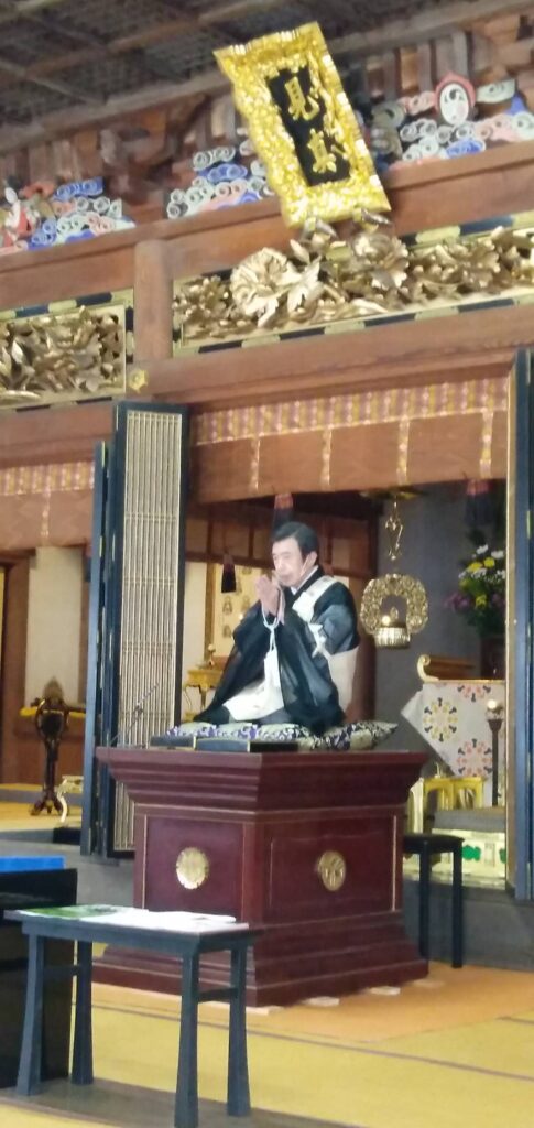 そこで、最後の御満座の席では、普段の講台を収め、高座を据えて、節談によるお話をいただきました。