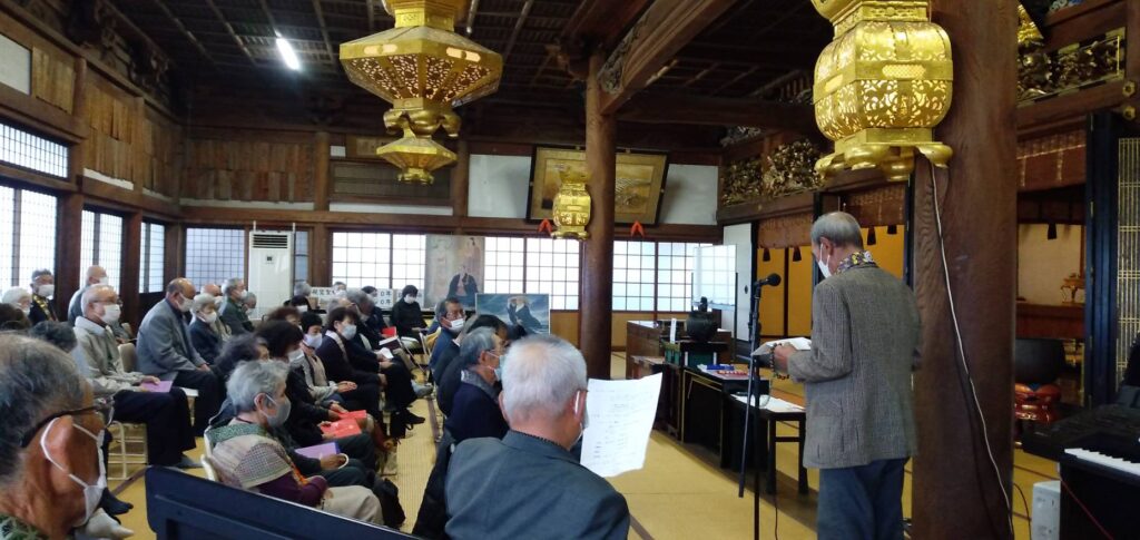 講座の最後は、皆様と『恩徳讃』を唱和。