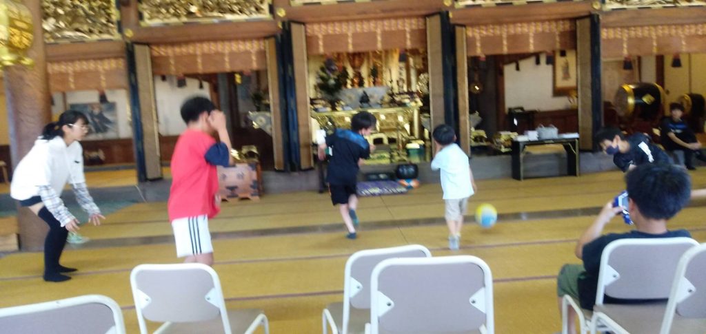 例年よりも早い梅雨入りで、気候が不安定な中にありながらも、ちょうど気持ちの良い青空が広がる1日となり、徳正寺の本堂・境内に、元気な声が響き渡りました。