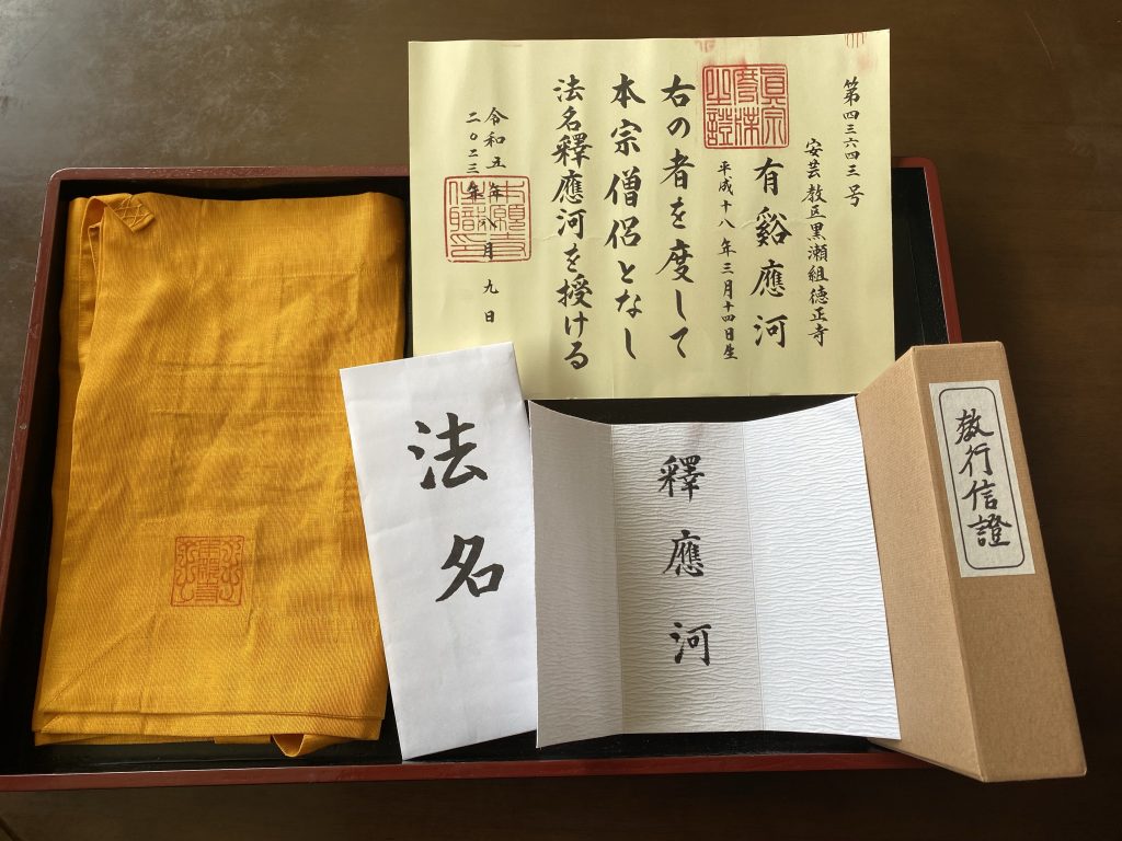 令和5年8月9日、新発意・應河が得度式を受式し、浄土真宗本願寺派の僧侶にならせていただきました。