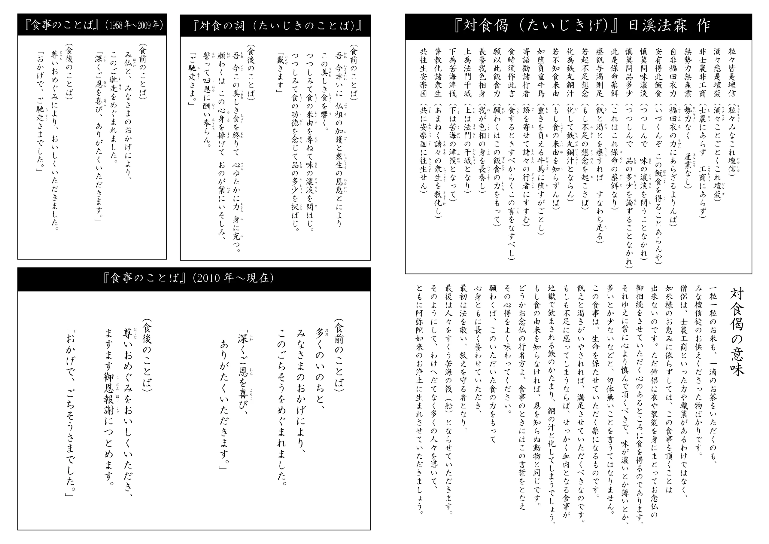 これもとに、浄土真宗本願寺派の食事のことばは始まり、時代に応じて言葉を変えながらも大切に唱和されています。