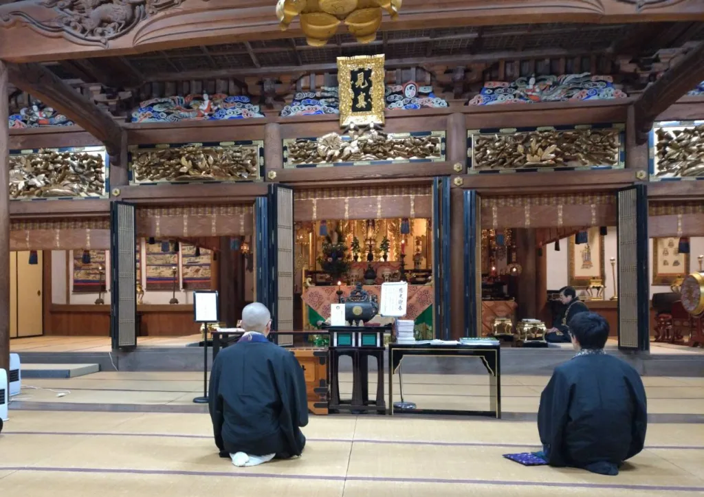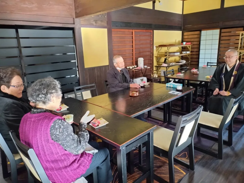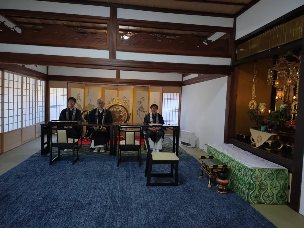 こうして新年を迎え、元日午前7時からは本堂で元旦会のお勤めを行い、翔凰殿において寺族が新年のご挨拶・ご接待を行いました。