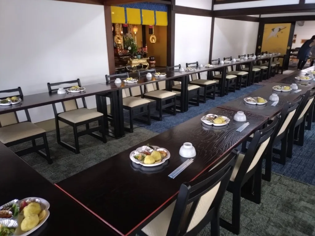 前日から、役員の皆様を中心に準備が行われ、当日も本堂での開会に間に合うように会員有志の皆さんが調理されました。
