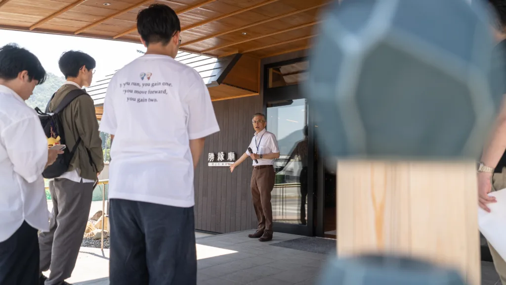 勝縁廟の設計士・柴田安章さんが自ら、設計コンセプトをはじめとした建築秘話を解説されました。