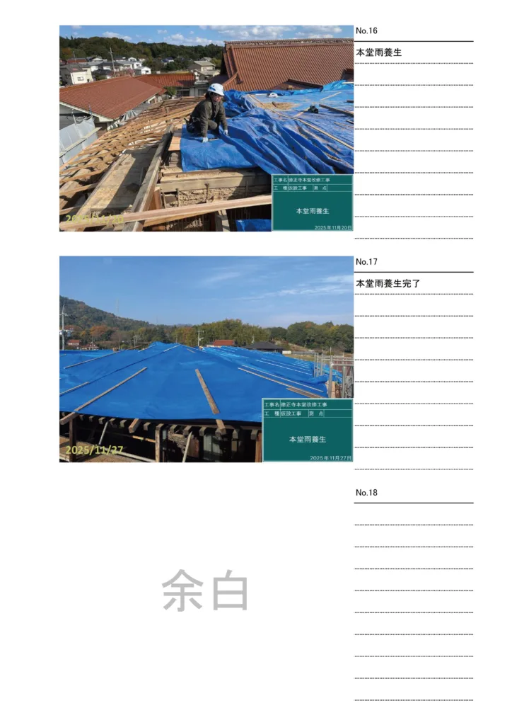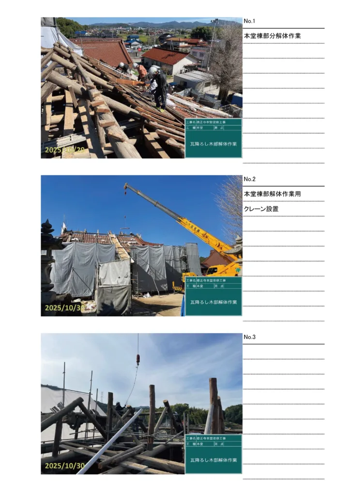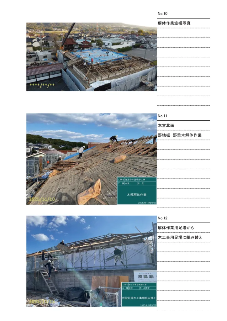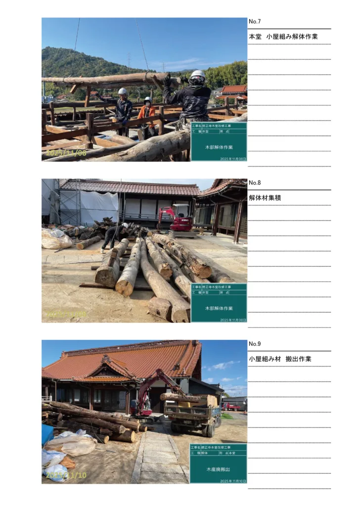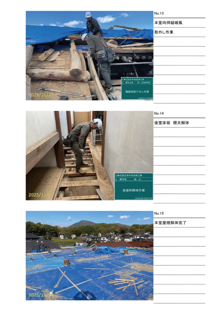 Categories 本堂修復事業 工事報告書(11月) Post author By 若院 Post date 2025/12/10 工事報告書(11月) へのコメントはまだありません Related Tags 11月, 屋根解体, 本堂工事, 瓦 ← 報恩講 → 工事報告書(12月) コメントを残す コメントをキャンセルメールアドレスが公開されることはありません。 ※ が付いている欄は必須項目ですコメント ※ 名前 ※ メール ※ サイト Notify me of follow-up comments by email. Notify me of new posts by email. Δ このサイトはスパムを低減するために Akismet を使っています。コメントデータの処理方法の詳細はこちらをご覧ください。