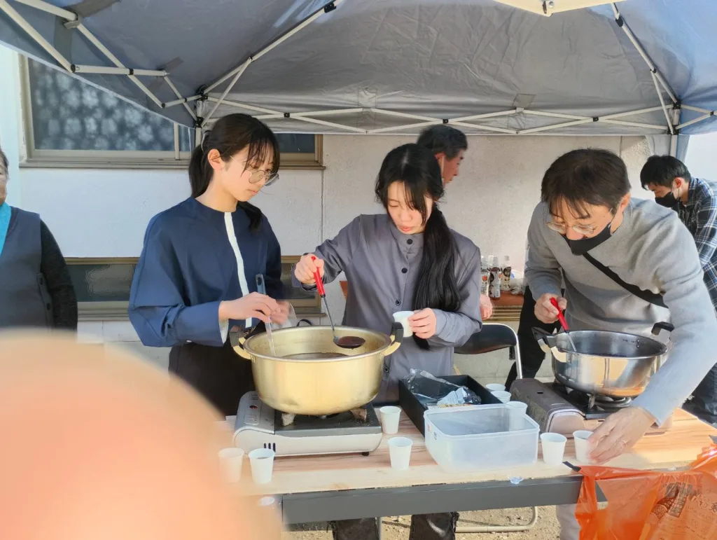 そのほか、境内にはぜんざいのふるまいなどもブースも設け、味覚を通しても皆様とよろこびを分かち合わせていただきました。
