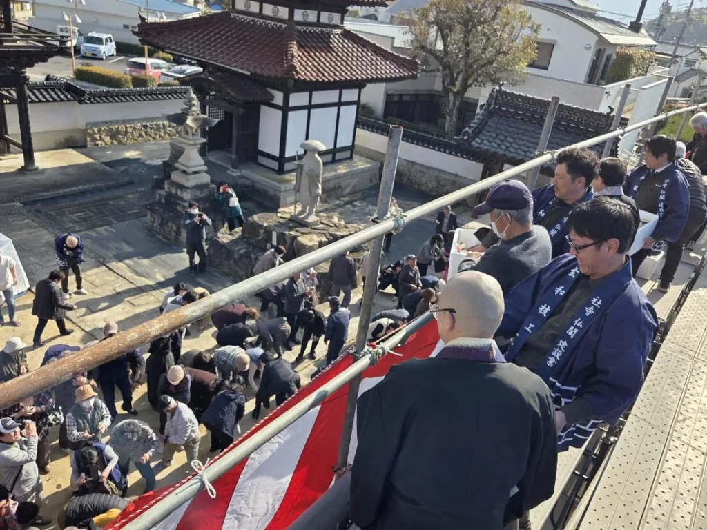2月22日(日)に執り行われました、徳正寺本堂大修復事業における本堂屋根の「上棟開始式」ならびに「餅まき」、「ジャズ演奏」の様子をご報告いたします。