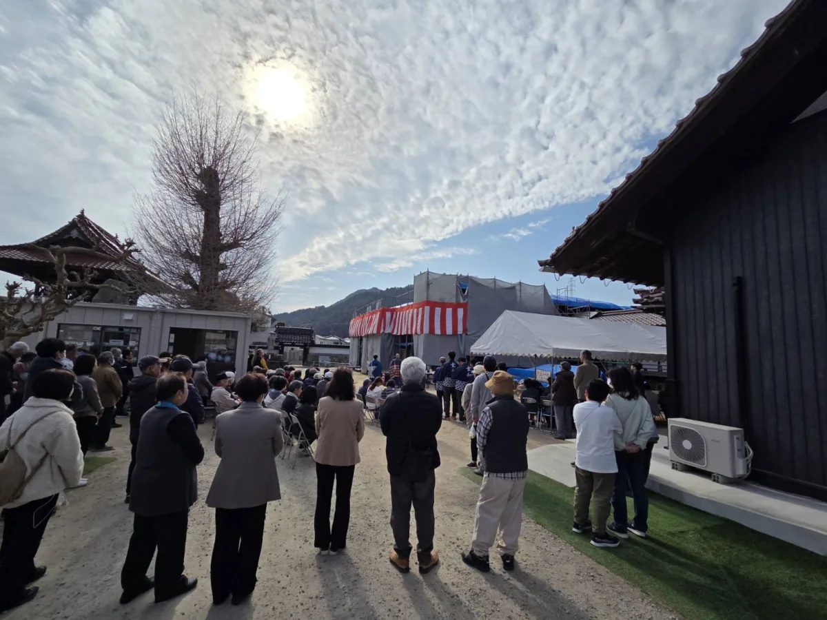 2月22日(日)に執り行われました、徳正寺本堂大修復事業における本堂屋根の「上棟開始式」ならびに「餅まき」、「ジャズ演奏」の様子をご報告いたします。
