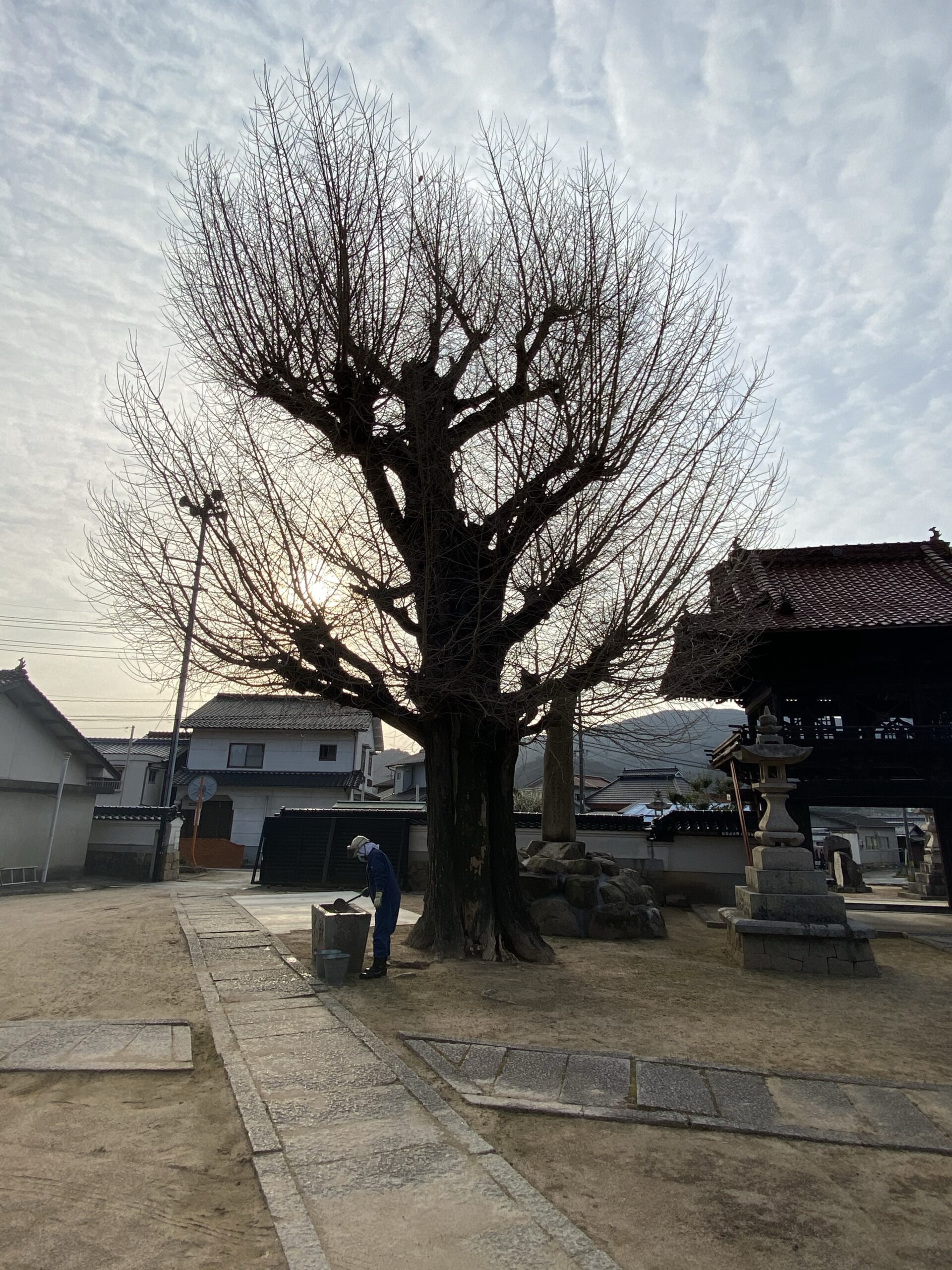 前回の剪定から5年以上経って枝葉が多くなってきた大銀杏。この度、大掛かりな剪定をお願いしました。 この度の大銀杏剪定に併せて、枯れてしまった松をはじめ、境内地の樹木も伐採していただきました。また、この期に境内にあった手水 […]