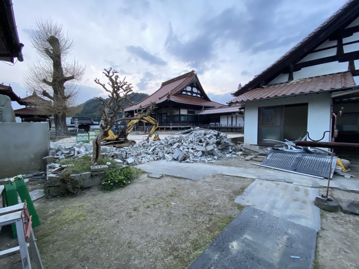 4月3日より、徳正寺庫裡の改修工事が始まりました。 早朝より工事関係者の皆さんが集まられて打ち合わせをし、解体工事が始まります。 土間にある井戸と大きな流しは、解体せずに残すので、しっかりと保護をしてからの工事となります […]