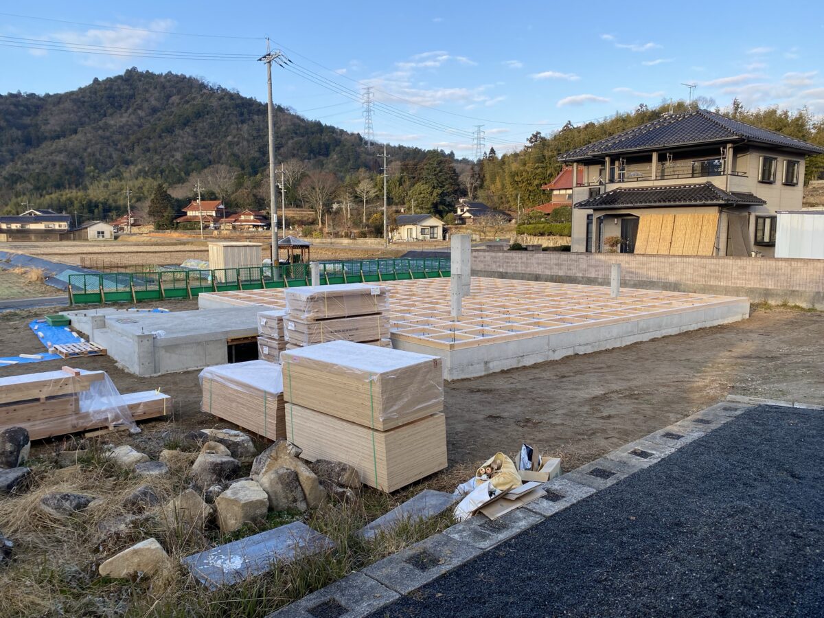 1月6日より、建方が始まりました。現場に次々と、プレカットされた木材が運ばれてきます。 まずは、土台敷きが行われていきました。 そして最後に、厚めの床下地合板を敷いて、土台が完成しました。 この土台の作り方は『剛床工法』 […]